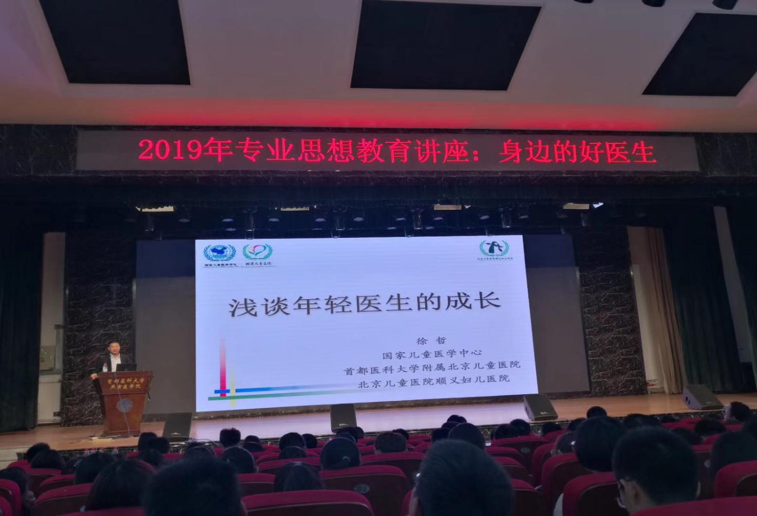 随后,国家儿童医学中心绅士漫画 附属北京儿童医院、北京儿童医院顺义妇儿医院副院长徐哲做《浅谈年轻医生的成长》专题讲座。徐院长先后分享了自己赴美、赴日学习的经历,并从学习、生活、工作三个方面为广大师生讲述了一名年轻医生的成长之路。徐院长勉励同学们,要尽早开悟,不断学习,平衡好生活和学习的关系,不断提升自己的综合素质。