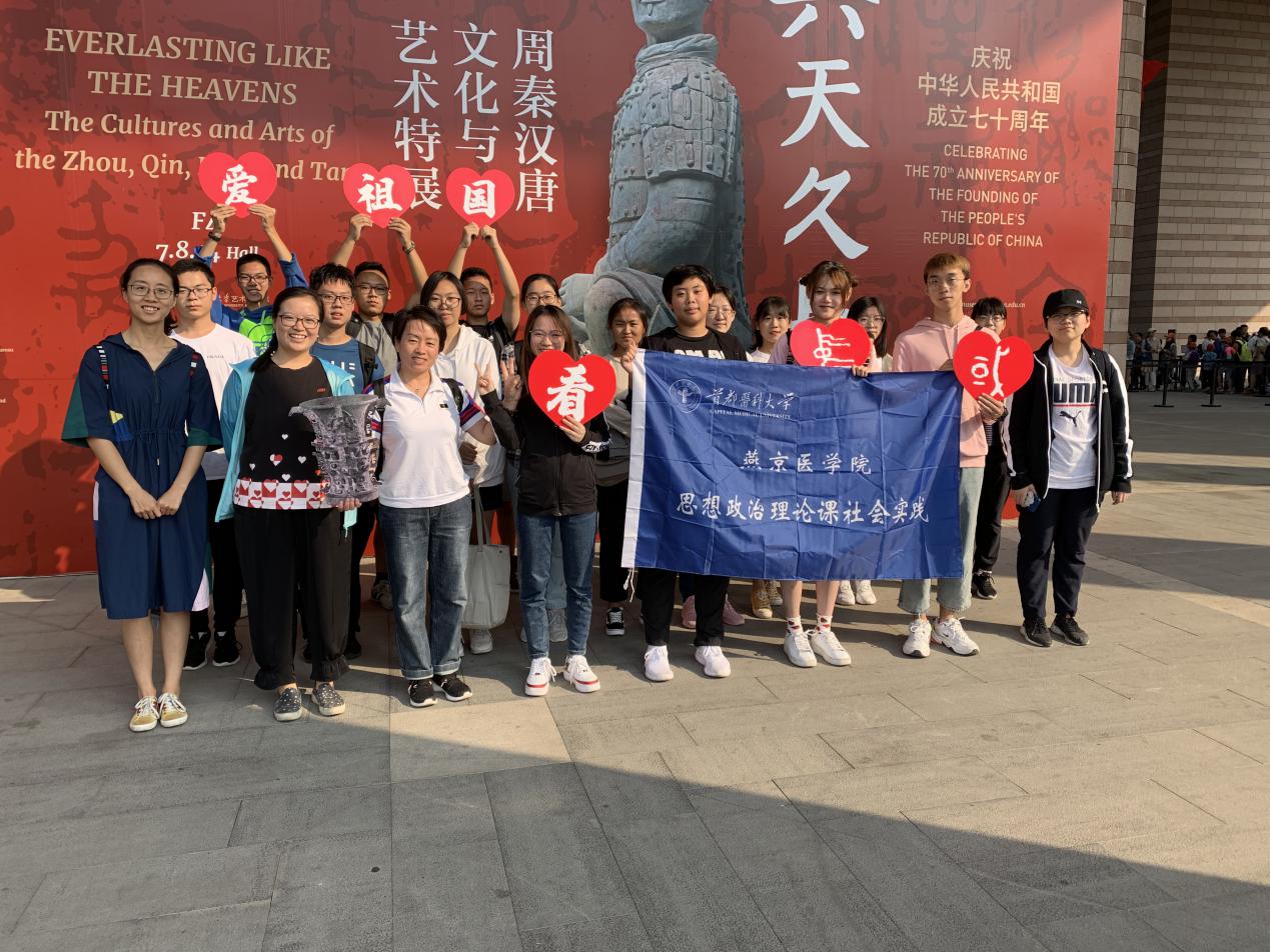 在新中国成立70周年之际,为加强对青年学生爱国主义教育,深入了解中国历史文化,增强思政课教学实效性,马克思主义学部燕京分部于9月28日上午组织师生20余人参观《与天久长——周秦汉唐文化与艺术特展》。本次展览的重量级展品“何尊”是一件西周早期的青铜器,这件重器的铭文中有“中国”一词最早的文字记载,对早期中国国家概念的形成具有重要的意义。