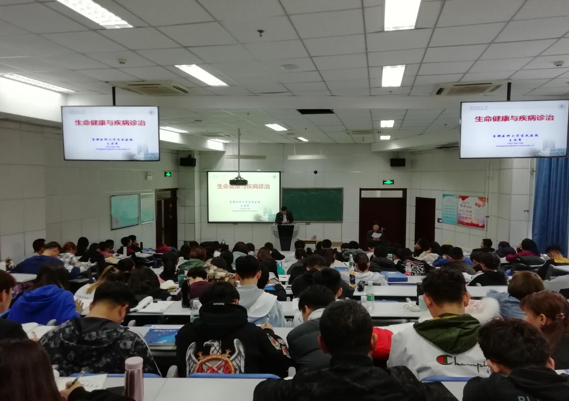 2019年11月11日,我系邀请宣武医院教育处处长、外科学博士、普外科副主任医师、王亚军副教授为2019级五年制临床医学(郊区定向)、2019级五年制临床医学(北京急救中心定向)的同学们上了一堂医学导论公开课。我系师生100余人参加了讲座。