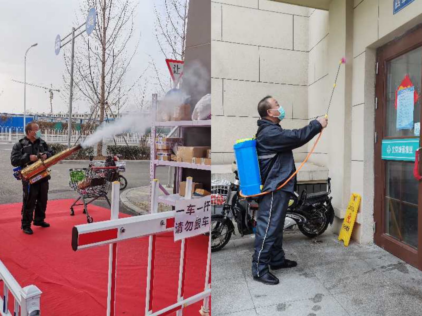 龚玉国老师,北京市蓝天救援队队员。疫情防控期间,女儿在医院发热门诊做筛查工作,奋战在疫情一线。2月1日至今,他担任小区中的园区和楼宇楼梯的消毒工作,每天背着消毒设备坐电梯到十几层,再步行到每一楼层,一趟下来,全身被汗水浸透,但为了更多人的生命与健康安全,他不惧辛劳,一直坚守。