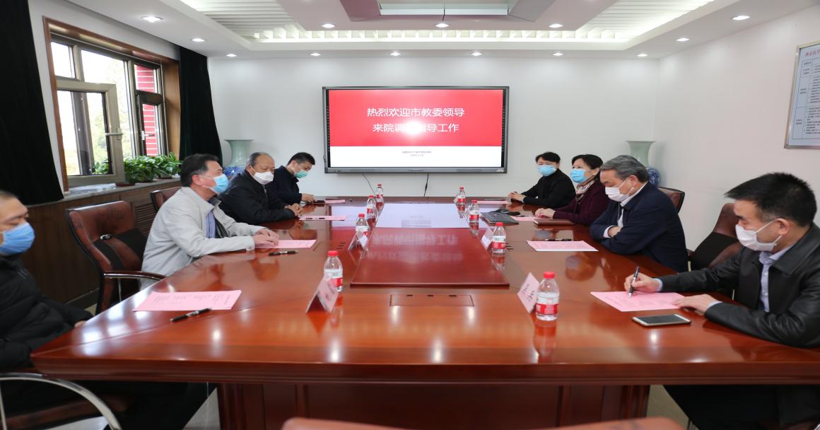 3月24日下午,市教委副主任黄侃、高教处处长刘霄、职成处处长王东江、余俊一行到绅士漫画 展开深入调研,绅士漫画 副校长王松灵院士、教务处处长武艳、绅士漫画 党委书记吴兵、院长杨红一同参加调研。