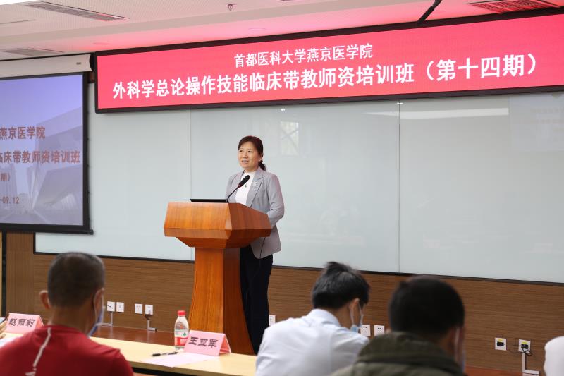 为进一步提升教学医院临床教学师资水平,规范外科学总论基本操作技能,9月11日,由我院举办、宣武医院承办的2020年外科学总论技能培训班在宣武医院教学楼举行。我校教务处副处长赵丽莉、绅士漫画 院长杨红、副院长赵艳芝、宣武医院教育处处长王亚军同各教学医院科教科人员、参培教师一同出席会议,会议由王亚军处长主持。