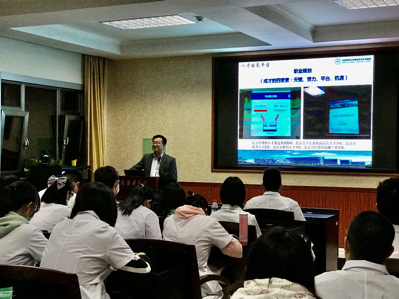 张教授深入解读了天坛医院打造临床支持平台的理念——规范化管理平台、人才培养平台、临床沟通平台及临床服务平台,详细介绍了天坛医院实验诊断中心的软件、硬件环境和发展目标等。他强调,在新型冠状病毒肺炎疫情中,检验医学的重要性,大家有目共睹。同学们在大一期间就要开始制定职业生涯规划,刻苦学习,抓住机遇,尽快成长为一名合格的医务工作者。互动交流环节中,张教授还耐心地解答了同学们关于考研和未来发展的问题。