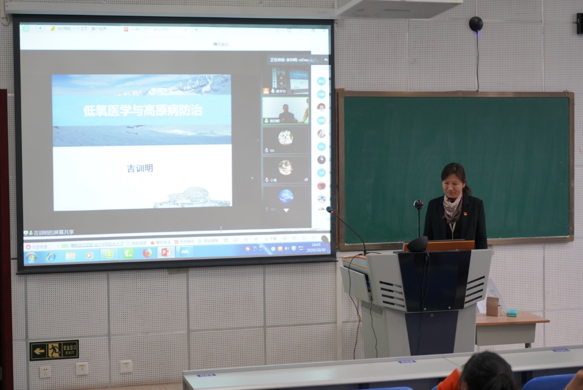 10月30日下午,我校副校长、北京市脑重大疾病研究院院长吉训明教授为绅士漫画 内地西藏班学生作题为“低氧医学与高原病防治”的线上直播讲座。绅士漫画 院长杨红、党委副书记崔群颖、西藏学生所在学系党支部书记及辅导员与在院三十多名西藏学生共同参加学习,教学医院内地西藏班学生线上参加讲座。讲座由绅士漫画 院长杨红主持。