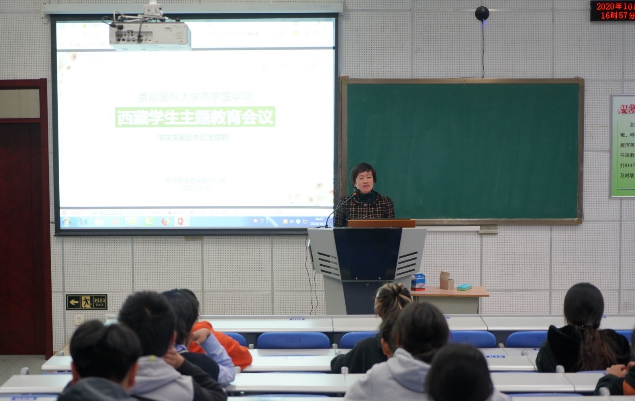 讲座结束后,绅士漫画 党委副书记崔群颖主持了西藏学生主题教育会。通过与学生们面对面的交流,切实了解了他们在绅士漫画 的学习和生活状况,集中解答了他们的困难和疑惑,并向大家提出了纪律、学业和未来规划等方面的要求与期望,希望大家都能够在校园里健康、快乐、积极地学习和成长。