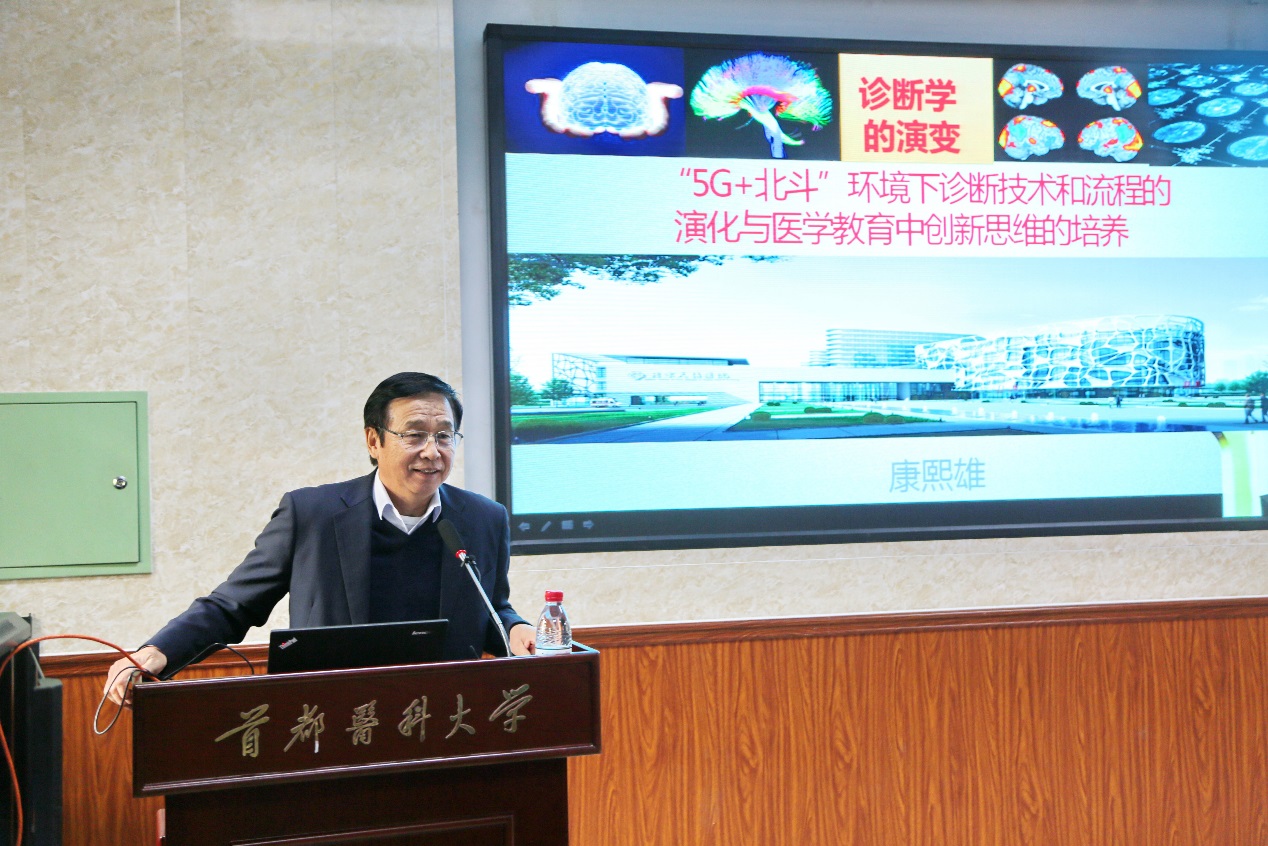 检验学系邀请附属北京天坛医院康熙雄教授开展题为“5G+北斗环境下诊断技术和流程的演化与医学教育中创新思维的培养”专家公开课,2020级医学检验技术专业新生和检验学系教师参加了此次讲座。