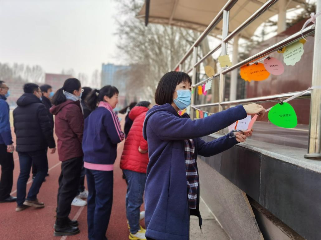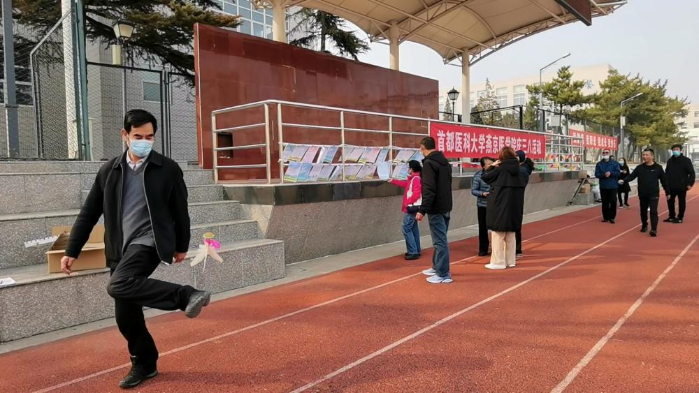 经过了一个和疫情抗战的假期,久未见面的同事们亲切交谈、说笑,顺着跑道边走边交流各自的工作和生活。他们在益智有趣的谜语区猜谜语,不时驻足思考,猜对了的喜悦交织着猜不出的少许遗憾;在古诗词挂画前赏读,或齐声朗诵,或独自吟唱,诗中的春景映着春天的气息,让每个人都感觉兴趣盎然;在踢毽子区,每个人都兴致十足地踢起毽子,在春风中尽情舒展自己的身心。