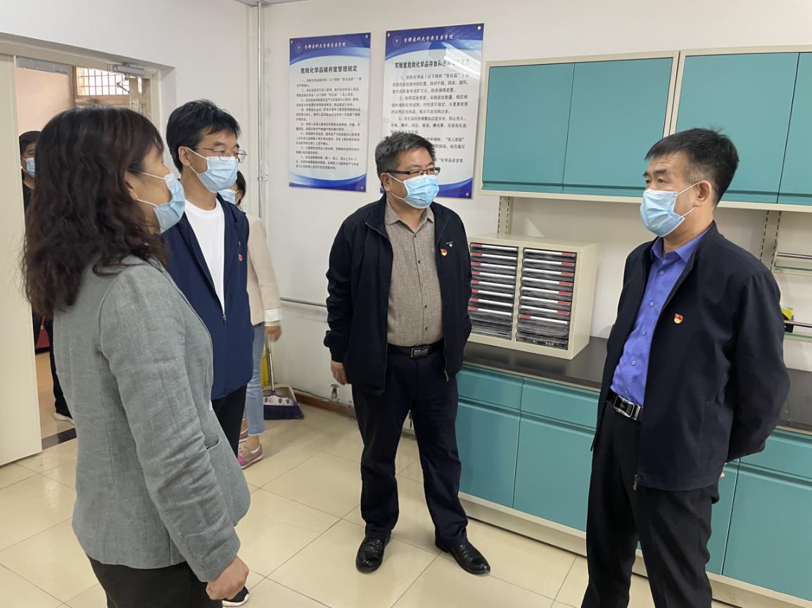 吴兵副校长一行先后来到绅士漫画 危化品库房、中心实验室、校医院楼宇改造施工现场等区域进行实地检查。