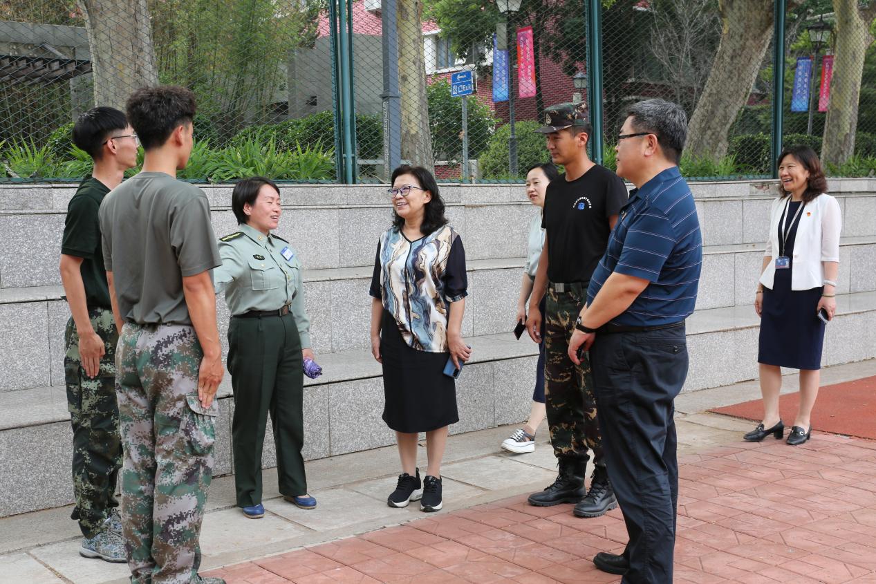 党委副书记崔群颖和军训团指导员的陪同下,看望军训团各连队指导员,逐一了解情况,对老师们的工作予以了肯定,并对个别具体情况提出指导和建议,鼓励大家努力坚持,胜利完成军训任务。
