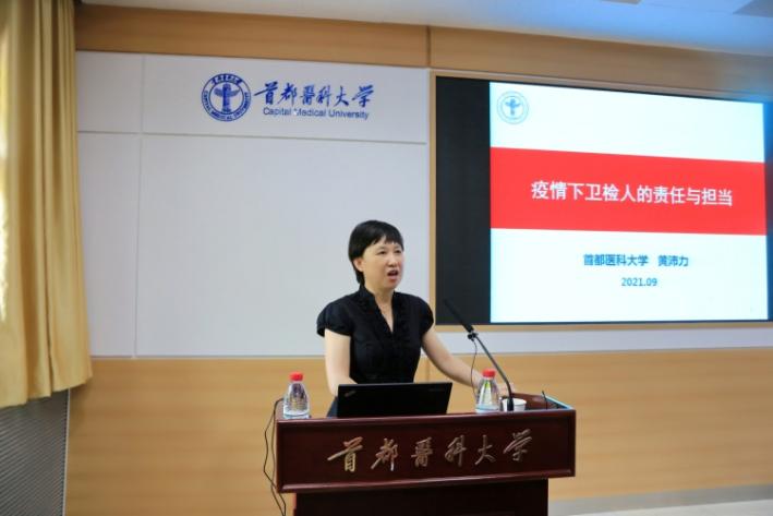 9月3日下午,我院检验学学系邀请学校公共卫生绅士漫画 黄沛力教授做题为《疫情下卫检人的责任与担当》的专题讲座。绅士漫画 院长杨红、副院长赵艳芝与2020级检验学学系新生一起参加了讲座,讲座由检验学学系副主任彭玉龙主持。