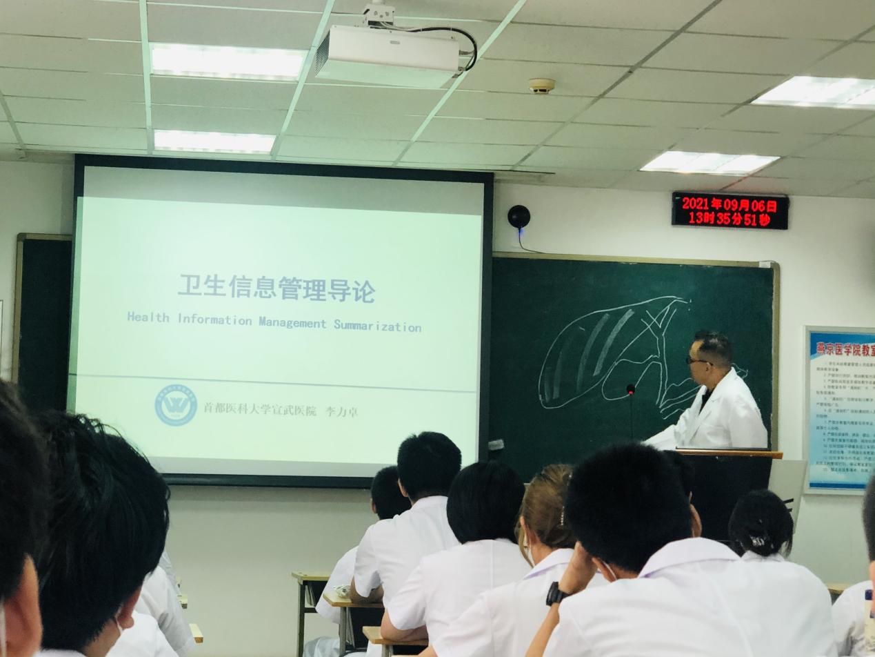 9月6日,卫生信息管理专业邀请我校宣武医院急诊科李力卓主任,为2021级信息管理与信息系统专业新生讲授“卫生信息管理导论”公开课。21级新生与卫生信息管理专业负责人付映宏老师、辅导员褚进丽老师、班主任王亚妮老师及专业教师参加了讲座。