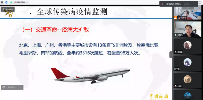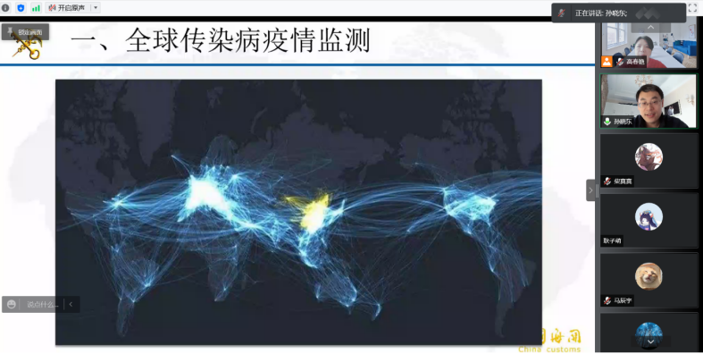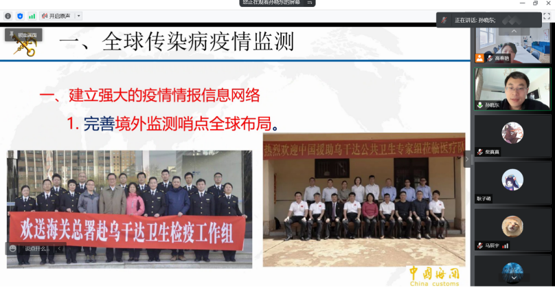 为进一步推动卫生检验与检疫专业学生了解专业学科最新进展,强化学生的专业认同感,3月23日,我院检验学学系特邀北京海关副研究员孙晓东老师,以云课堂的方式,带领同学们深入了解了作为国门第一道防线的国境口岸的卫生检疫工作。本次讲座由检验学学系主任高春艳老师主持,19级卫生检验与检疫专业学生及检验学学系教师聆听了讲座。