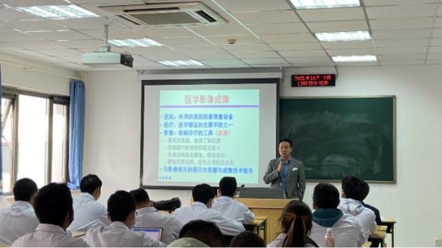 10月26日,绅士漫画 附属北京友谊医院放射科主任杨正汉教授受邀来我院为2021级医学影像技术专业新生讲授专业导论课。院长杨红、学系副主任董建鑫及学系部分教师参加了此次活动。