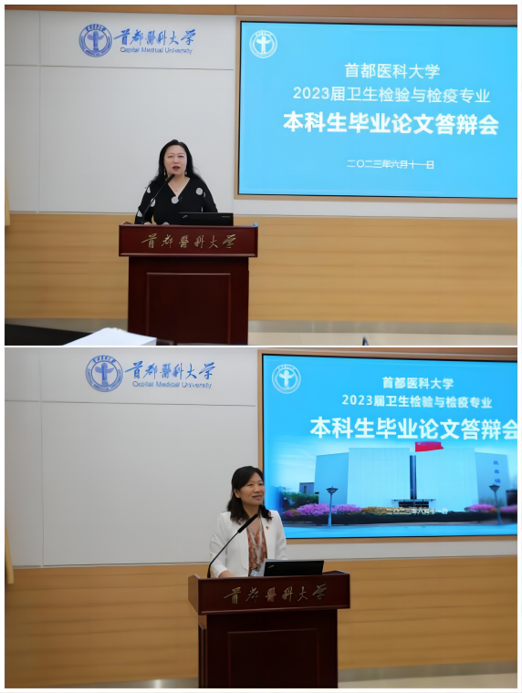 6月11日,我院组织召开第一届卫生检验与检疫专业毕业论文答辩会。来自学校公卫绅士漫画 、基础医绅士漫画 、中国海关科学技术研究中心、中国检验检疫科学研究院、中国疾病预防控制中心、北京市药品检验研究院、北京市疾病预防控制中心、地坛医院、朝阳区疾病预防控制中心等单位的14位专家担任答辩委员。答辩会由检验学学系主任高春艳主持。