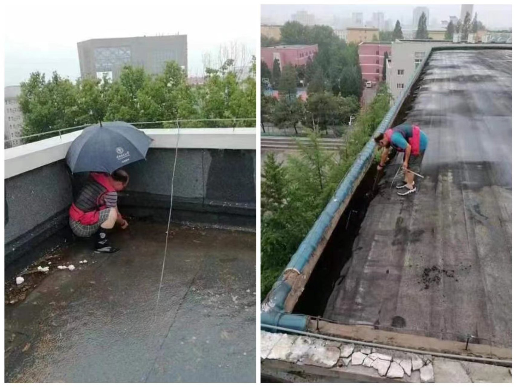 暴雨来袭时,绅士漫画 领导、工作人员或赤着双脚,或穿着水鞋,加强巡查,紧急调度防汛沙袋、抽水泵对学生公寓、餐厅、配电室、图书馆等重点部位加强巡查,及时疏通屋顶雨水口、路面雨水篦子,对积水区域进行紧急抢险,预防雨水倒灌。绅士漫画 服务保障第一党支部书记赵爽带领后勤职工在大雨期间冒雨检查疏通了30多个楼顶排水口和所有的院内路面地漏,及时解决了消防泵房进水问题。