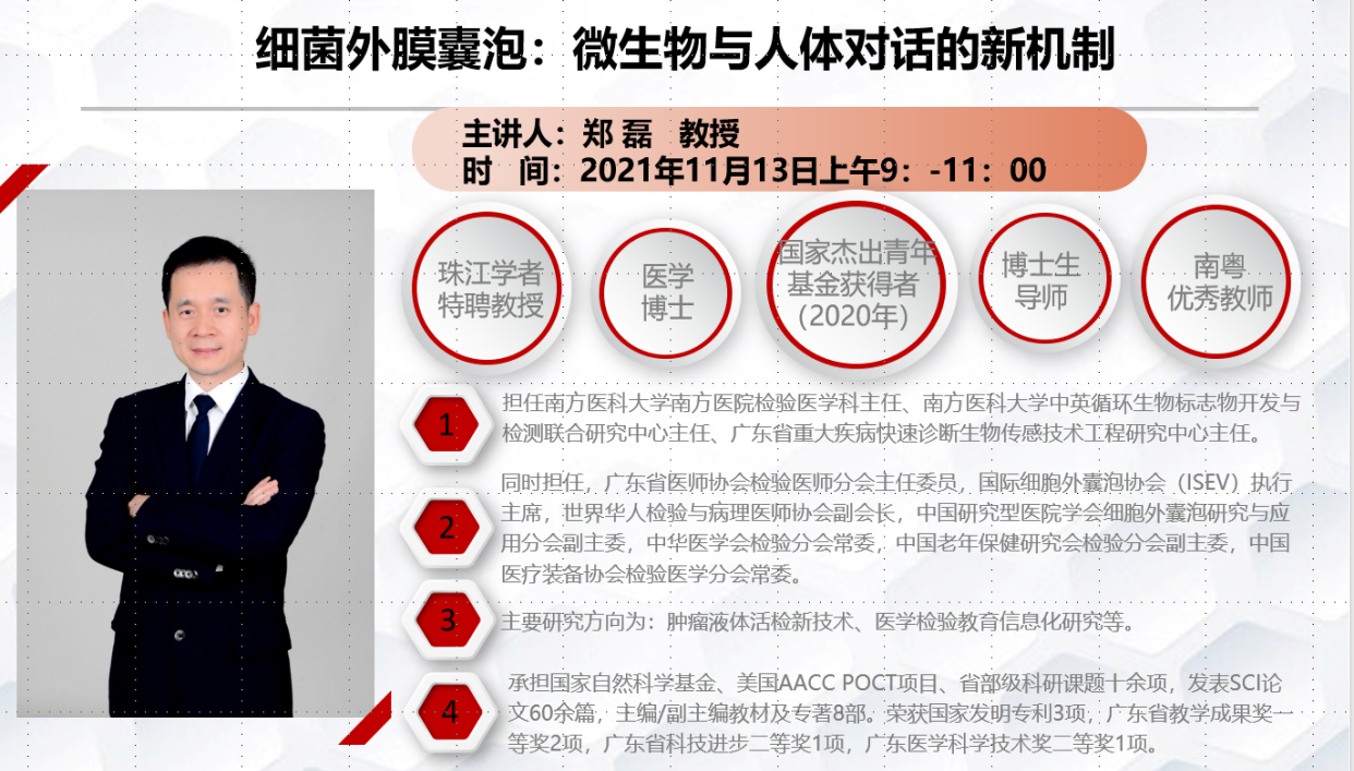 我院邀请南方医科大学南方医院郑磊教授作“细菌外膜囊泡:微生物与人体对话的新机制”学术讲座