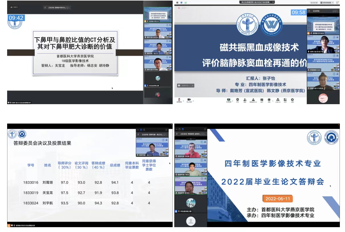 6月11日,我院召开2022届四年制医学影像技术专业毕业论文线上答辩会,绅士漫画 教务处督导专家赵素梅、李民华,绅士漫画 院长杨红、副书记赵艳芝、绅士漫画 教学办公室部分领导、医学影像学学系主任胡玲静以及学系和临床的部分教师出席本次答辩会。