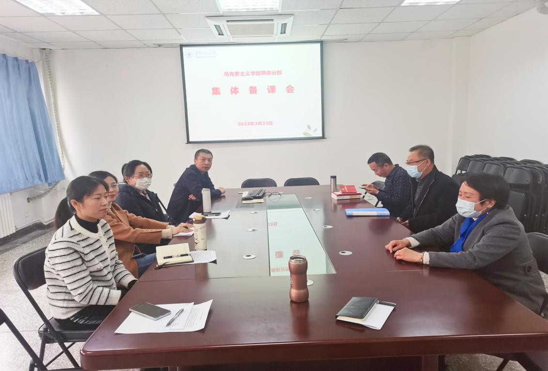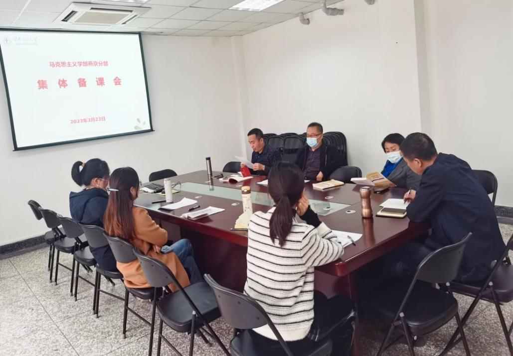 为全面宣传贯彻党的二十大精神,深化思政课教师对2023年全国“两会”精神的学习领会,及时将“两会”精神融入思政课课堂教学,充分发挥思政课理论武装的主阵地、主渠道作用,认真落实好习近平新时代中国特色社会主义思想的“三进”工作,马克思主义学部燕京分部于3月23日以集体备课会的形式组织任课教师进行交流研讨。绅士漫画 副院长崔群颖、公共教学部主任卢景国和马克思主义学部燕京分部任课老师参加了会议。